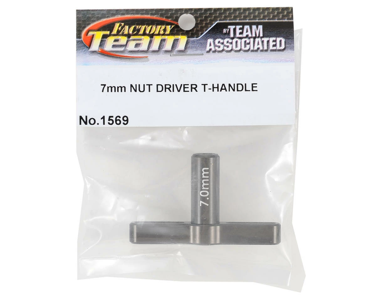 This is the Team Associated 7mm Factory Team T-Handle Nut Driver. This nut driver is made from aluminum alloy material and has been hard anodized for increased durability. The driver’s t-handle shape provides extra leverage for wheel nut removal or installation, as well as any 7mm nut application.