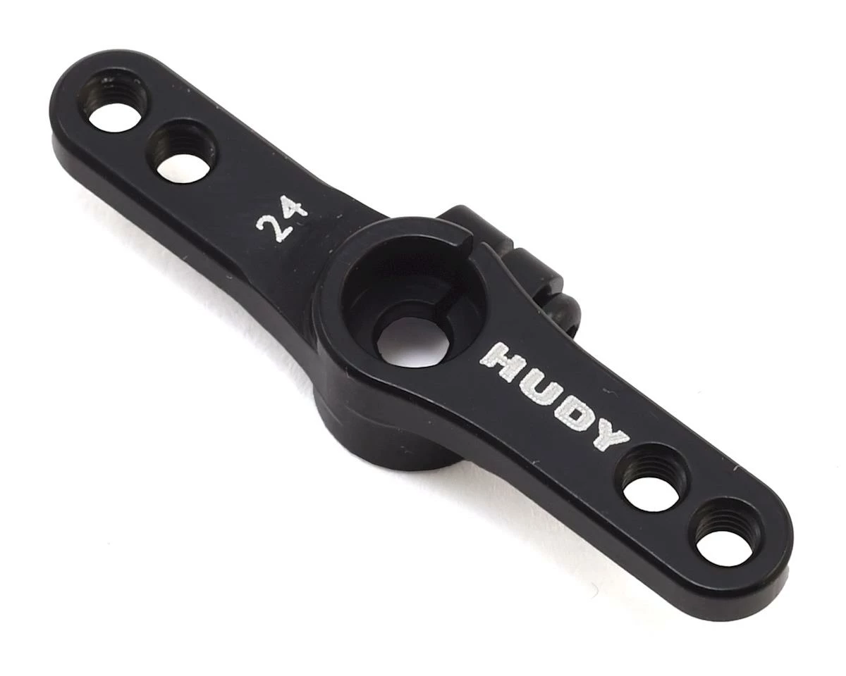 The Hudy Aluminum Clamping Offset 2 Hole Servo Horn is a CNC-machined throttle servo horn. The clamp design allows easy assembly and maximum strength to eliminate the flex associated with composite servo horns. Ultra-strong construction provides very long life and durability. Drilled and tapped for 3mm-linkage hardware. Machined from strong Swiss 7075 T6 aluminum and black coated. Laser engraved for easy identification. Package includes one 24 tooth double arm clamping servo horn.