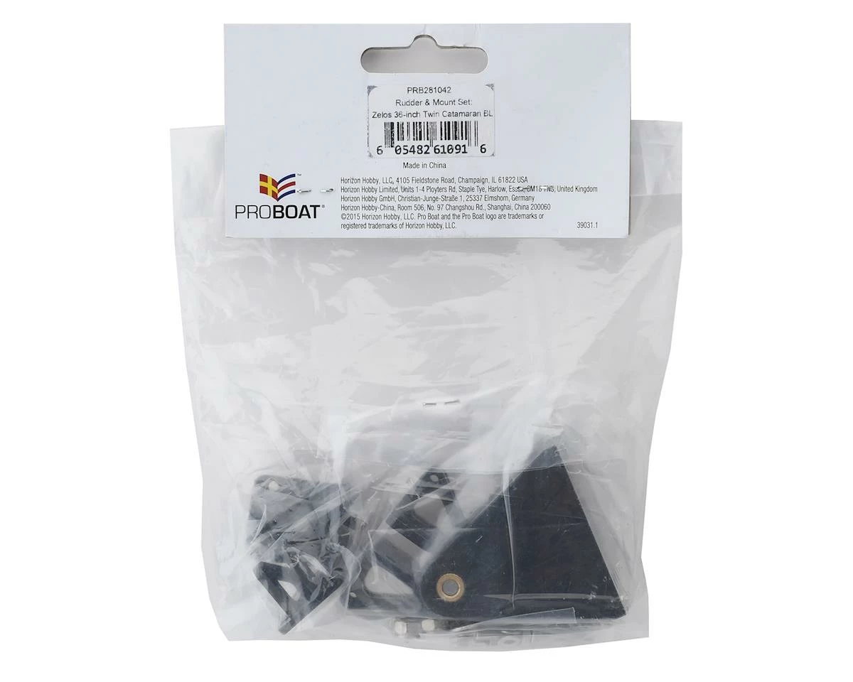 This is a replacement Pro Boat EICO Zelos 36 Rudder and Mount Set, intended for use with the Zelos 36″ Twin Brushless Catamaran. This pack includes one rudder, two mounts and hardware.