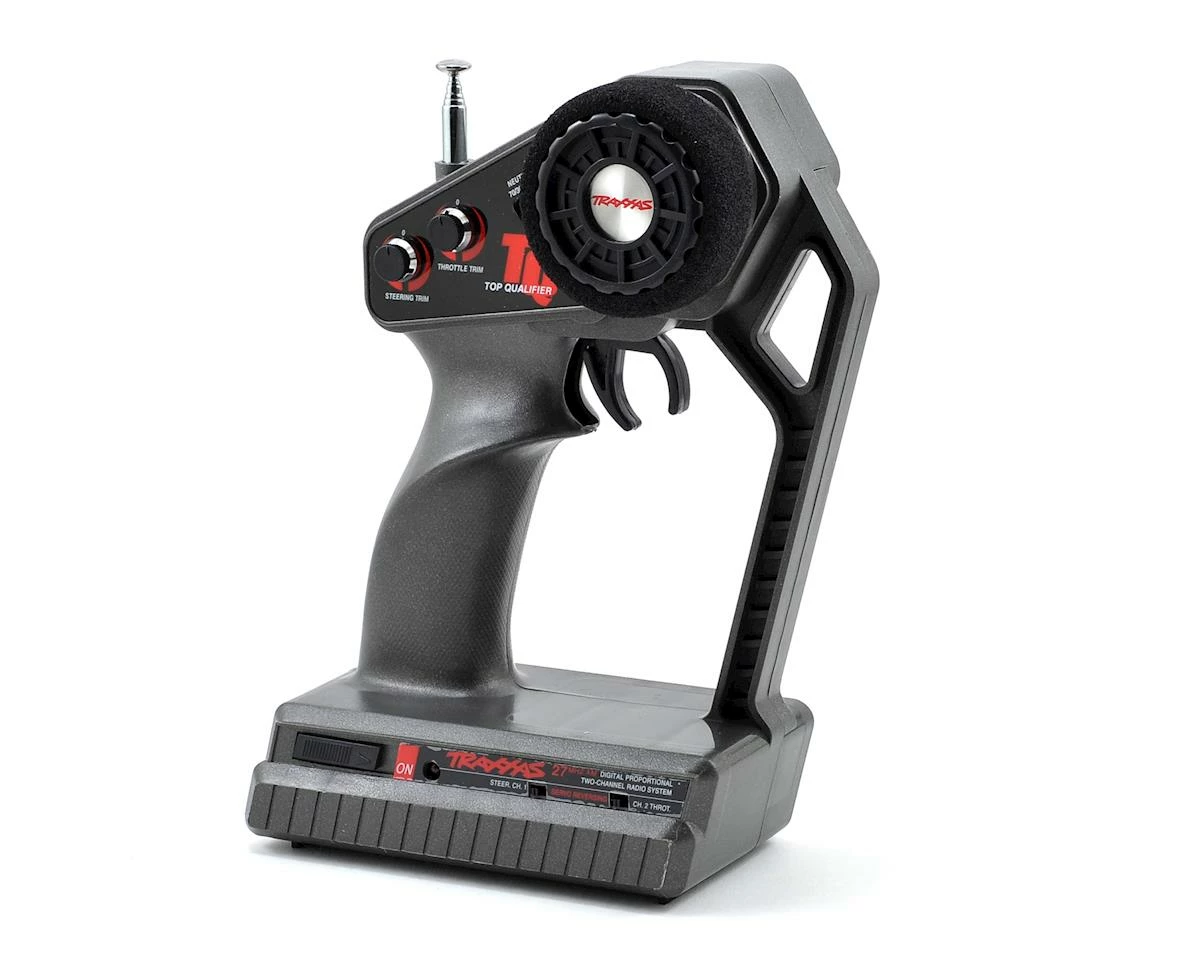 This is the Traxxas 27MHz TQ 2-Channel Transmitter. The Traxxas Top Qualifier radio is now available as a complete system for use in any kit with 2-channel requirements. This is the same high-quality, high-power 27MHz radio transmitter now included in Traxxas ready-to-run cars and trucks.