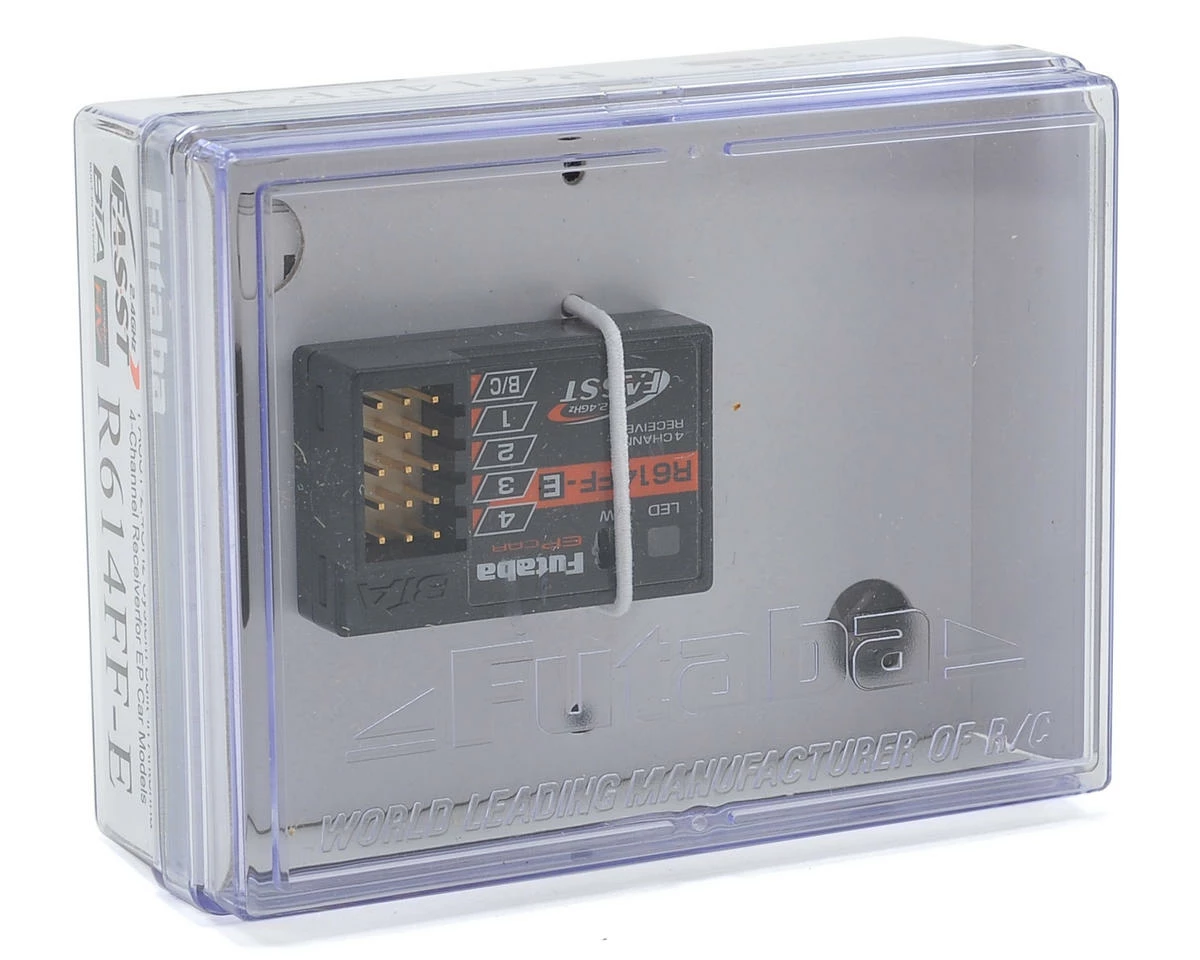 The Futaba R614FF-E 2.4GHz 4-Channel FASST Receiver is compatible with the Futaba 4PK/4PKS/4PKSR and 4PX/4PXR/7PK Surface Radio Systems operating in C2 mode. This receiver features normal and high-speed modes for analog and digital servo compatibility.
